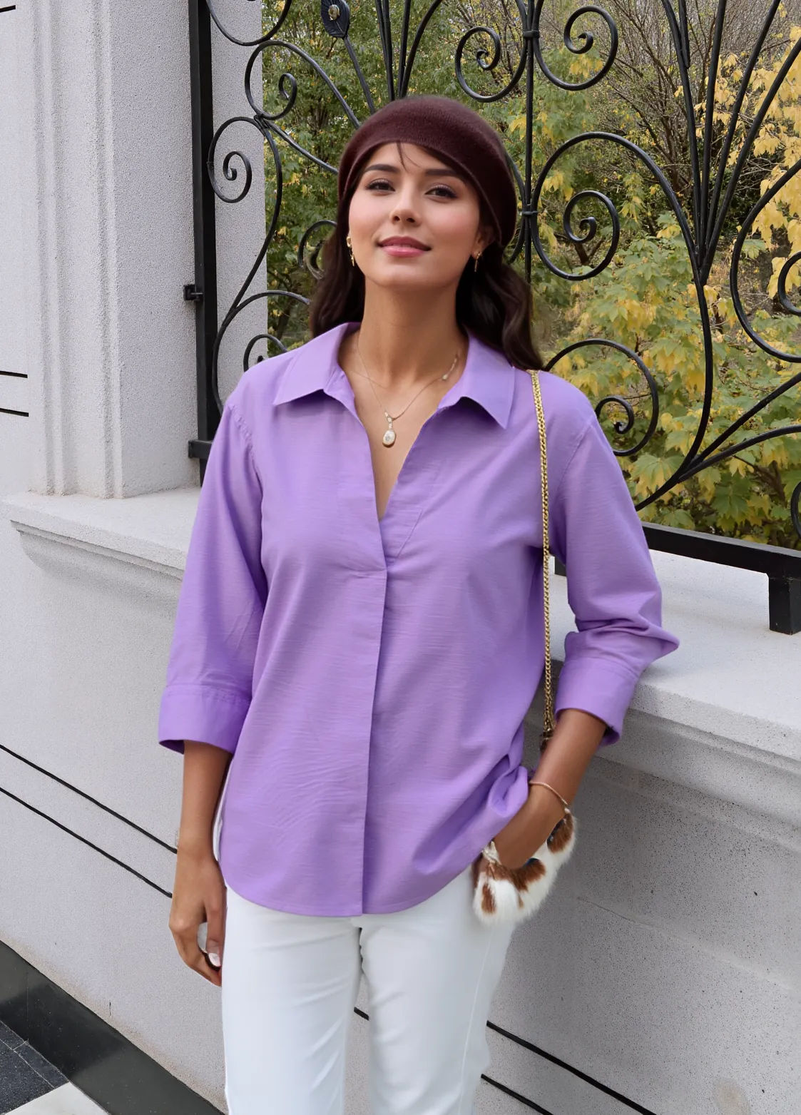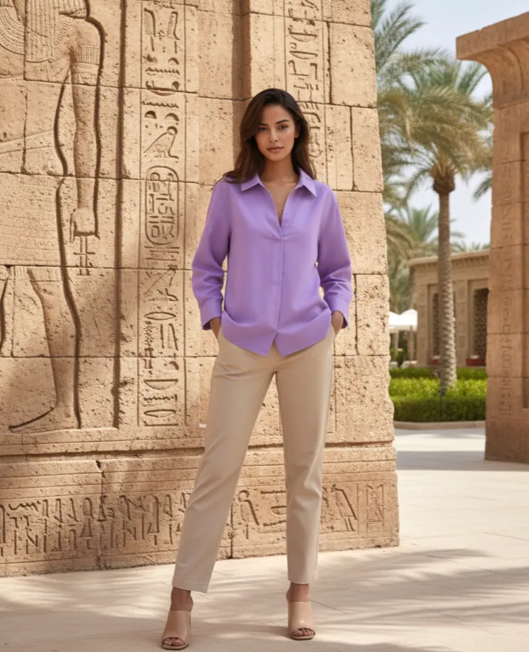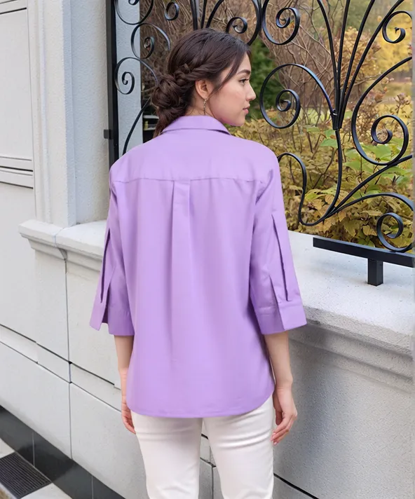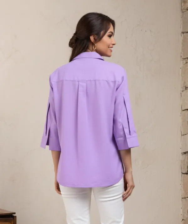 SLUB TEXTURED COTTON SPREAD COLLAR THREE-QUARTER SLEEVES WOVEN REGULAR FIT